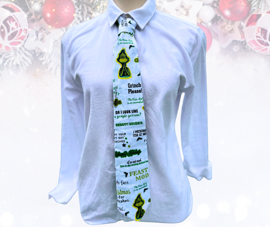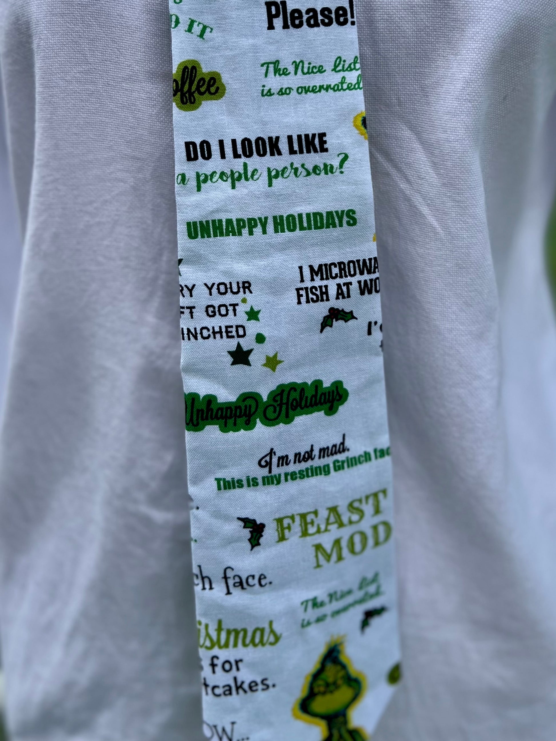 Luce con diversión y estilo esta temporada. 🎄💚 Esta corbata artesanal está confeccionada 100% en algodón de alta calidad y cosida a mano con dedicación, lo que la convierte en una pieza única y especial inspirada en el icónico Grinch.