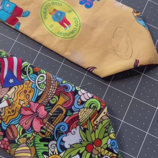 Luce con elegancia y orgullo boricua. Esta corbata artesanal está confeccionada 100% en algodón de alta calidad y cosida a mano con dedicación, lo que la convierte en una pieza única y exclusiva.